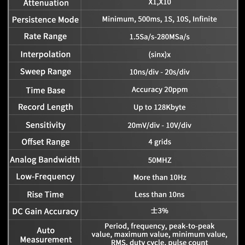 Real Time Sampling Rate: 280MSa/s